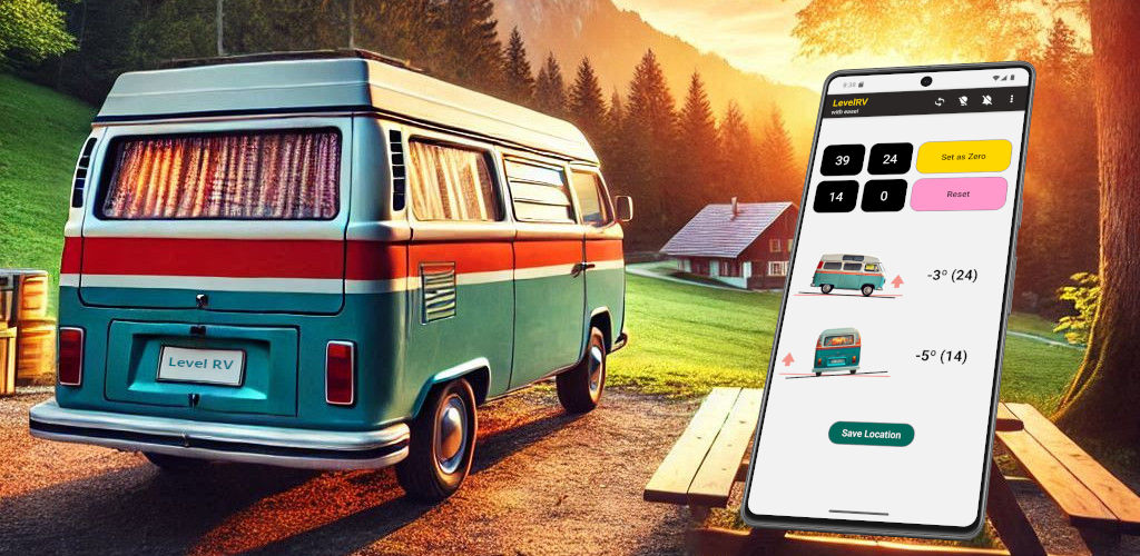 The app uses the selected vehicle image to visually align leveling directions, making it easier to understand which side or corner needs adjustment.
